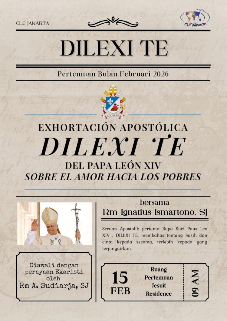Informasi mengenai pertemuan bulan Februari 2026 yang membahas pesan-pesan mendalam dari surat apostolik "Dilexi Te" untuk memperkuat spiritualitas dan kasih dalam kehidupan sehari-hari.
