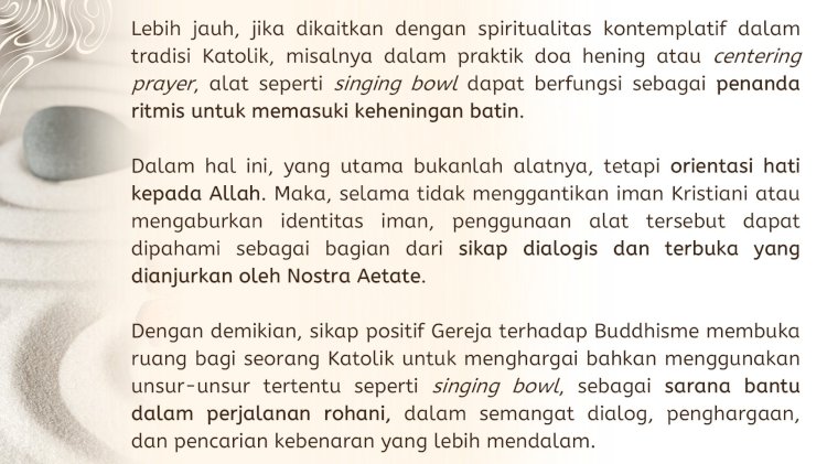 HAL YANG DAPAT DIPELAJARI OLEH ORANG KATOLIK DARI BUDDHISME SEHUBUNGAN DENGAN LAUDATO SI’ MELALUI PENGGUNAAN SINGING BOWL