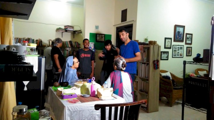Suster Laurentina PI dan Mama Pendeta Emmy segera berpelukan. Kemudian mereka masuk ke dalam rumah dan duduk di meja makan yang berhadapan langsung dengan pintu masuk. Semuanya didokumentasikan dengan pengambilan sudut gambar yang tepat. Selama proses pembuatan film berlangsung, aku mengobrol santai bersama Kakak Aris yang sehari-hari menemani mama pendeta Emmy. Aku juga mengobrol dengan beberapa anggota tim dalam pembuatan film ini, empat di antaranya merupakan orang asing, berasal dari Afghanistan. Kami duduk di ruang tamu, namun masih bisa melihat proses shooting berlangsung. Pembicaraan Suster Laurentina PI dan mama pendeta Emmy mengalir dalam pembahasan mengenai human trafficking.