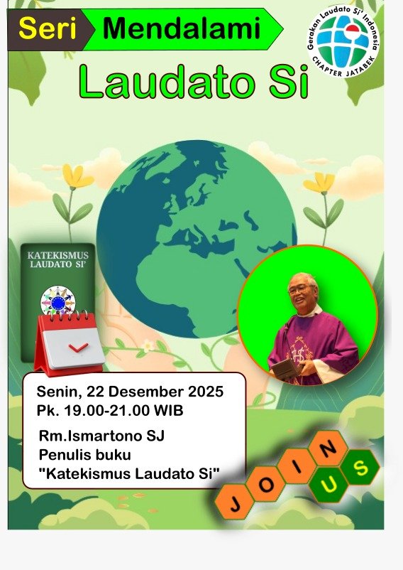 Undangan terbuka untuk mengikuti kegiatan pendalaman ensiklik Laudato Si' guna meningkatkan kesadaran dan aksi nyata dalam menjaga kelestarian lingkungan hidup sebagai rumah kita bersama.